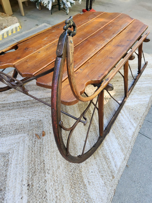Antique pine sleigh with swan head