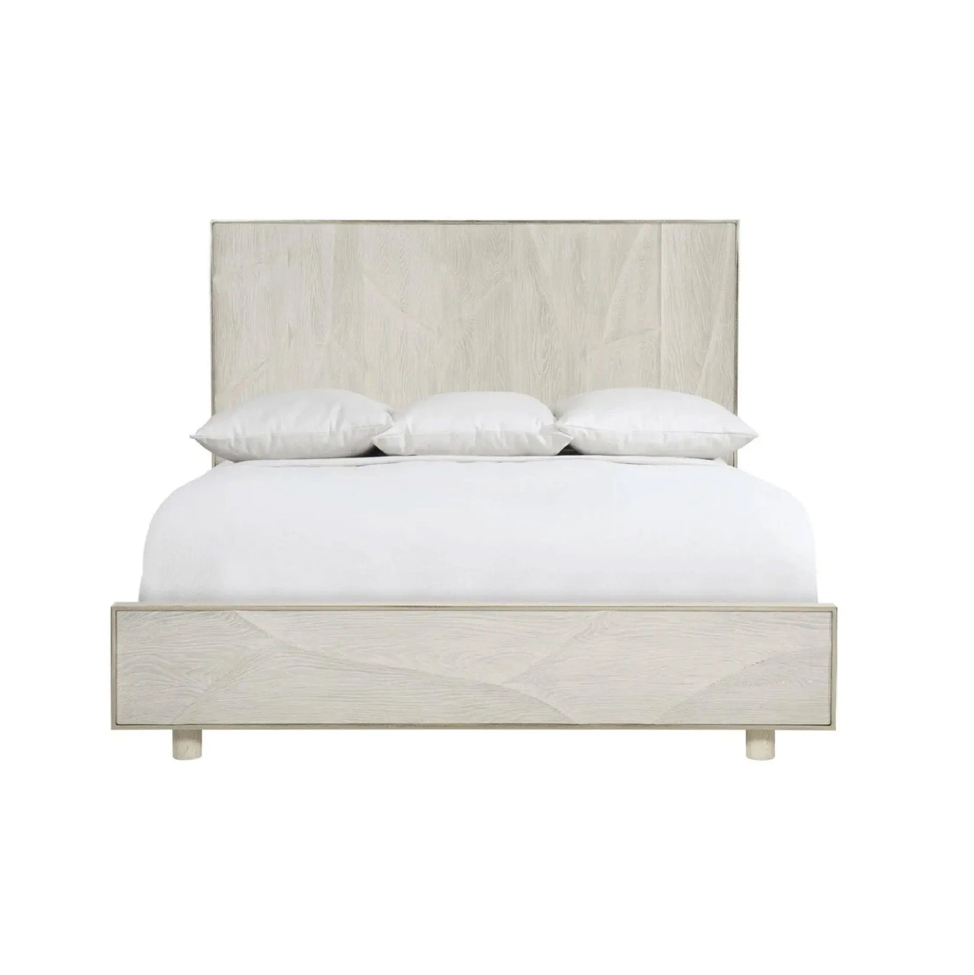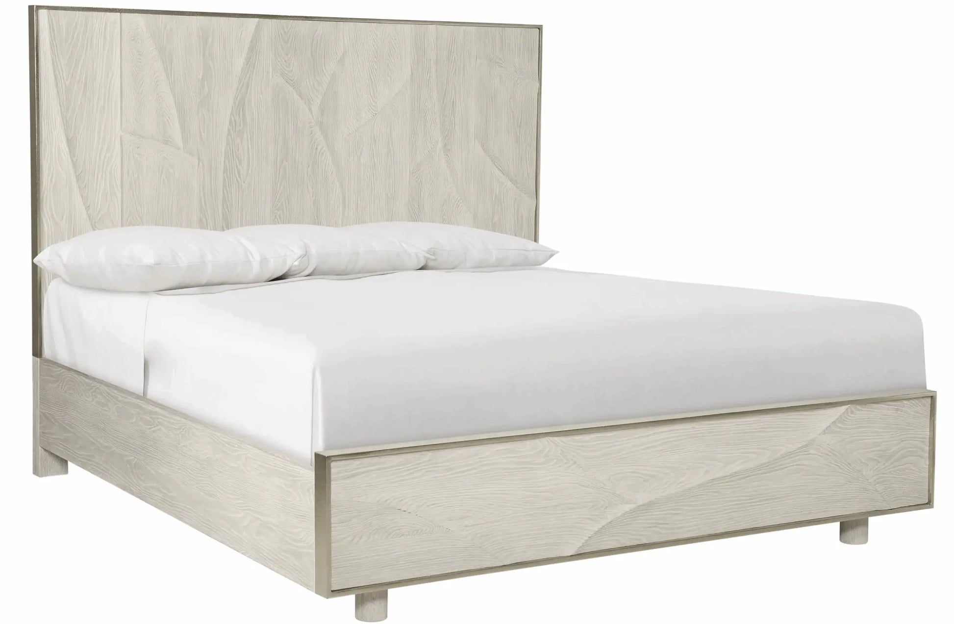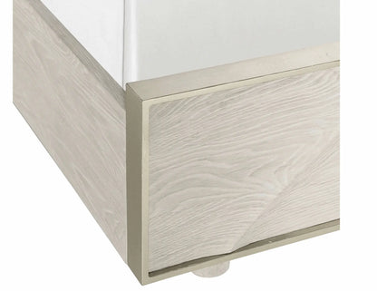 Enhance the appearance of your bedroom with the Alvarez panel bed, featuring a beautifully finished design that showcases the natural grain. Designed for minimalist and modern interiors, this impressive bed has a shiny Nickel finish on a cast aluminum headboard and footboard frame, as well as cast resin overlay panels. The bed is supported by five wood slats and an adjustable double center support system, with a metal-framed headboard and footboard and round recessed feet on the footboard. It also includes wood side rails. Please note that this bed is only available in King size and may undergo specification changes without notice. Due to potential variations in screen resolutions, the displayed fabric and finish colors may differ from the actual product. This statement-making bed measures at 80" in width, 87" in depth, and 62" in height. The shipping process may take up to 4 weeks, as lead times are subject to change. Refunds and returns are not available.