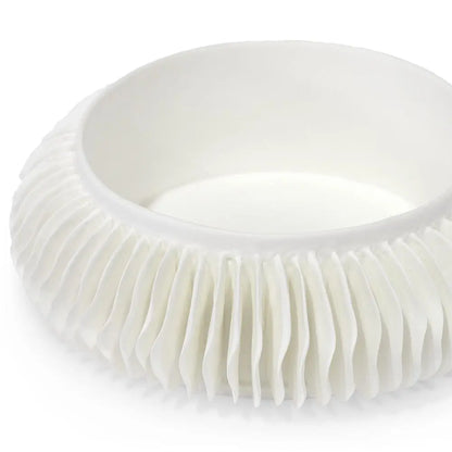 Uniquely textural and curvaceous, the Antilles porcelain bowl is crafted of fine bone china in white finish. Arrange flowers or small collections inside and place it on a table in your foyer to welcome guests to your home. Endless combinations and possibilities for this versatile piece.
