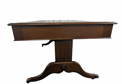 Antique English leather top desk with drawers on casters
