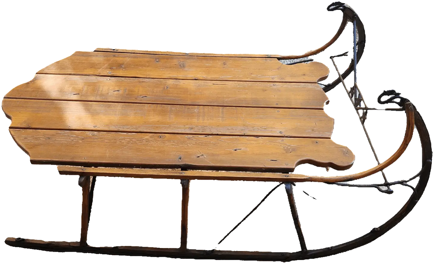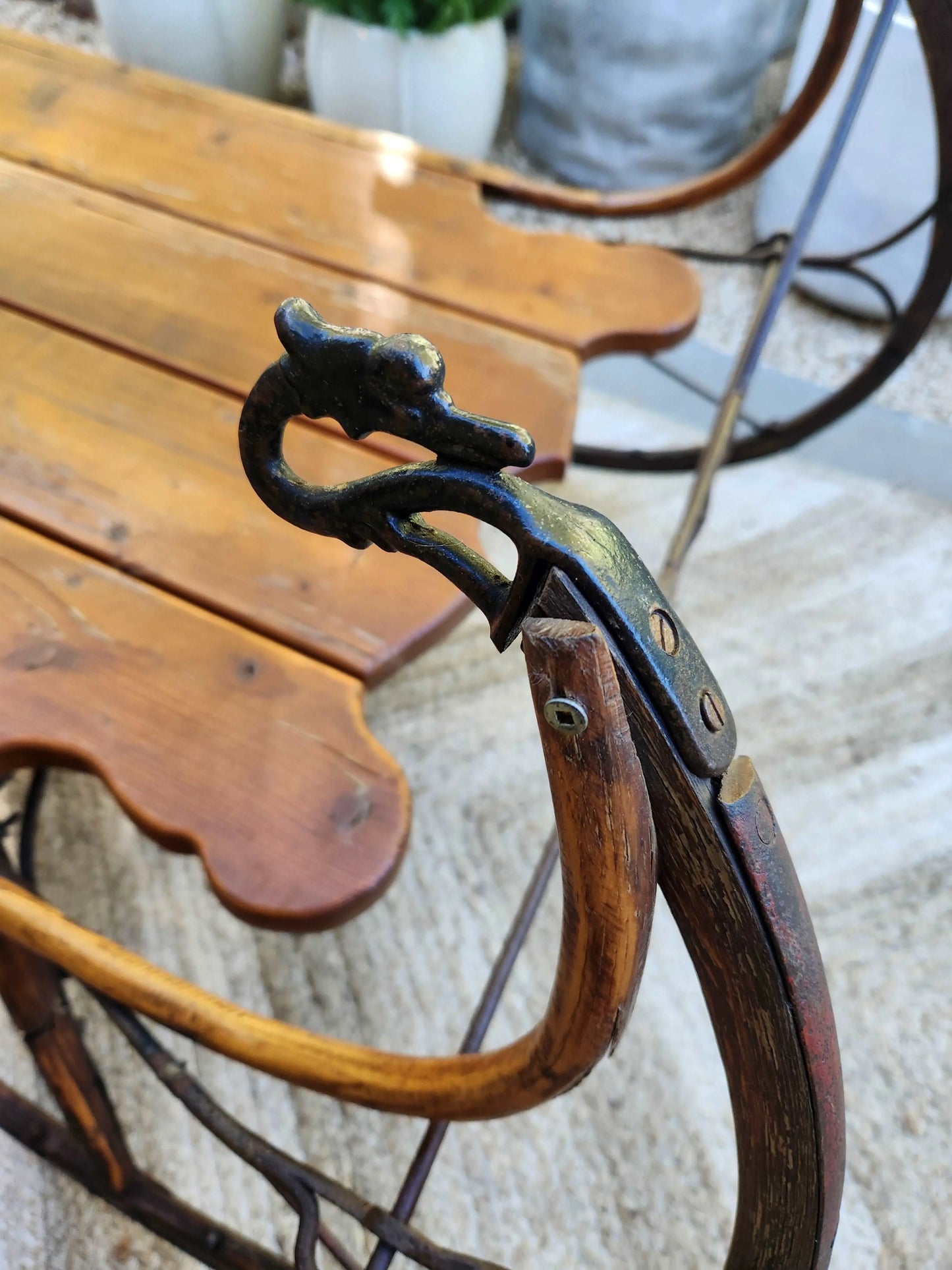 Antique pine sleigh with swan head