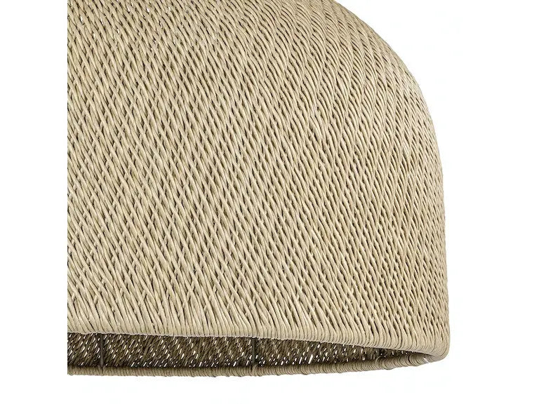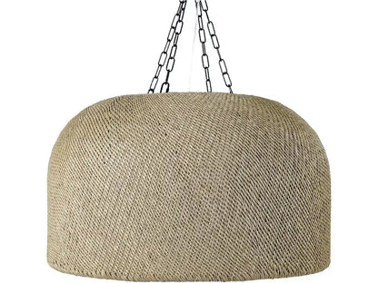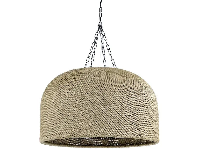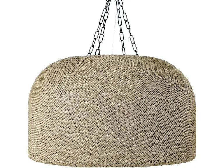 The Augustine Outdoor Chandelier features a durable powder coated metal frame, intricately hand-wrapped in all-weather synthetic wicker in an elegant seagrass hue. Included with a chain and canopy kit in sleek matte black, this chandelier is suitable for covered outdoor spaces in damp conditions without direct water exposure. Professional installation is recommended for optimal results. Measuring 36.75" in diameter and 22" in height, with connecting chains measuring 12", it is a stunning and practical addition to any outdoor setting. OVERALL DIMENSIONS: 36.75"D X 22"H + 12"CONNECTING CHAINS CANOPY DIMENSIONS: 5"D X 1"H CANOPY FINISH: BLACK CHAIN LENGTH: 9' CHAIN FINISH: BLACK ADJUSTABLE LENGTH - MIN: 38.5" ADJUSTABLE LENGTH - MAX: 146.5" SOCKET QTY: 3 SOCKET TYPE: E26 BULB TYPE: TYPE A