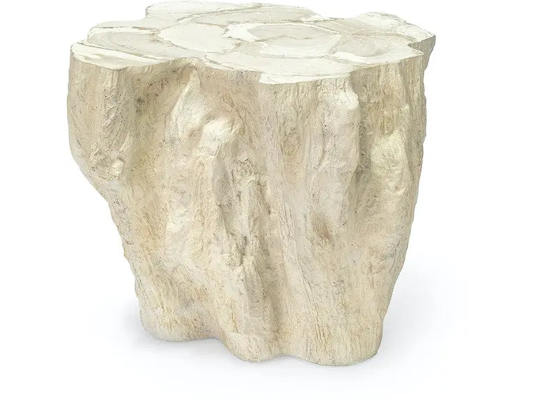Crafted with precision, this Side Table features a beautifully inlaid fossilized clam shell atop a stonecast base. The natural tree trunk mold is finished in warm cream tones, highlighting the unique color and grain variations of the natural material. Part of the Camilla collection, its dimensions measure 21.5" in length, 21" in width, and 18" in height. Please allow up to 4 weeks for shipping as lead times may vary. This item is final sale and not eligible for refunds or returns. BOX SIZE - LENGTH: 32" BOX SIZE - WIDTH: 32" BOX SIZE - HEIGHT: 29" WEIGHT - IN BOX: 85 LBS. WEIGHT - OUT OF BOX: 47 LBS. DELIVERY METHOD: TRUCK SHIP ONLY.
