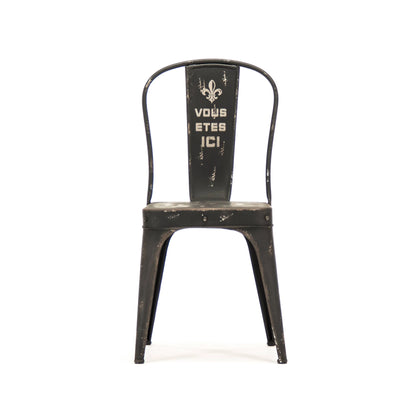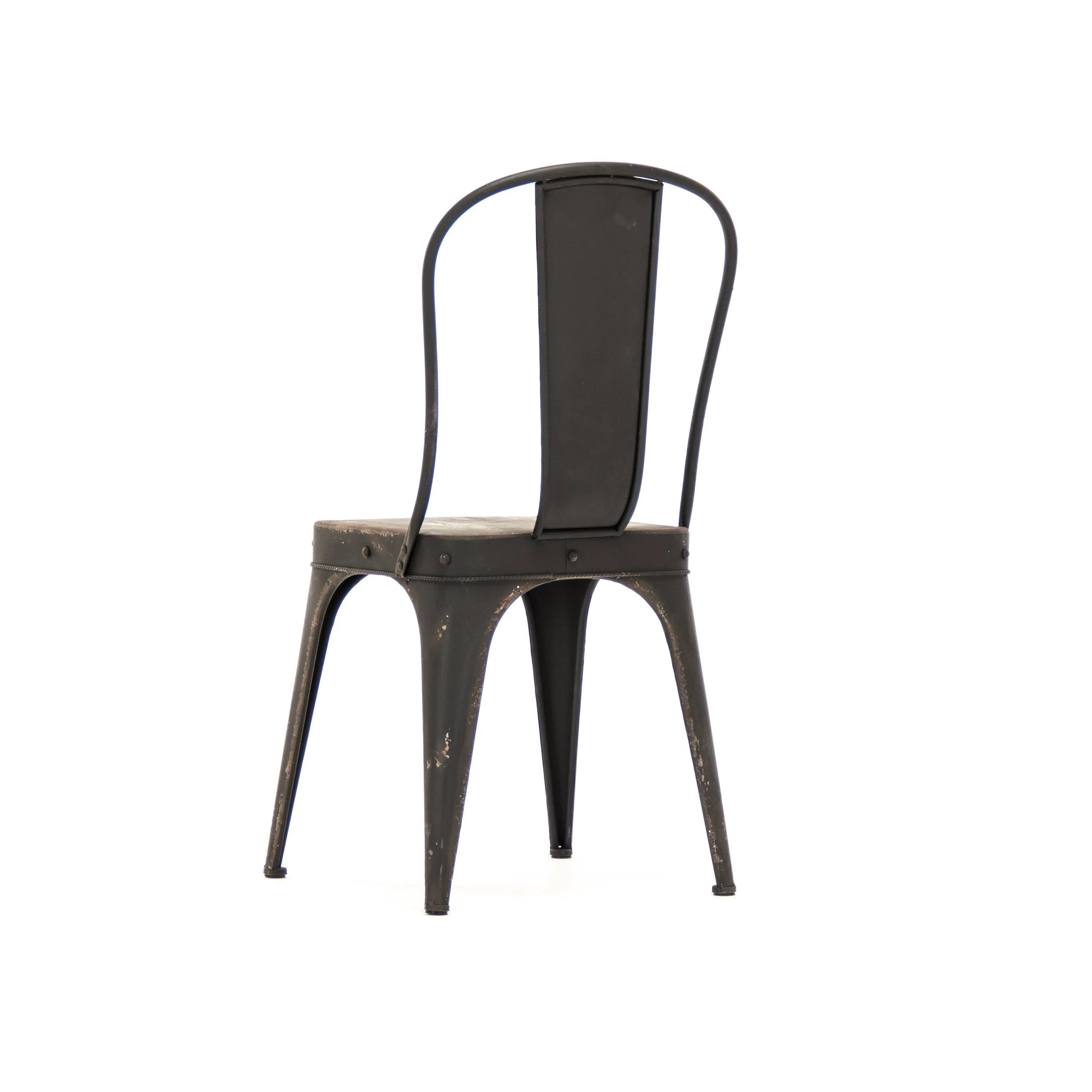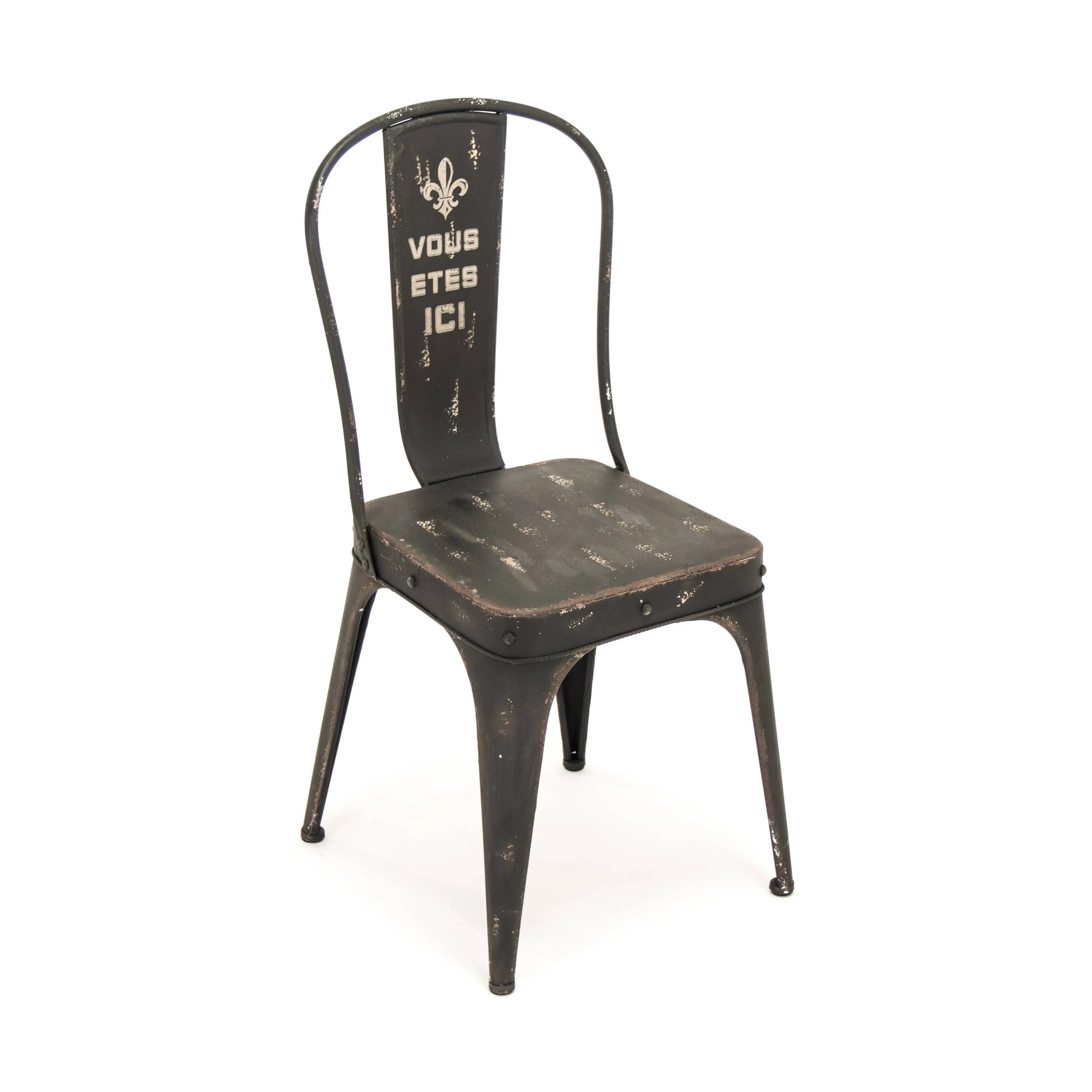 Constructed from iron with an antique black finish, this Christelle side chair exudes a crafted and distressed aesthetic. The French inspiration behind this piece adds a touch of sophistication to any space. Dimensions: W17 x H35.5 x D16.