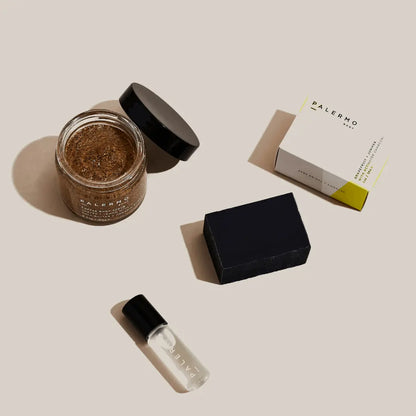 - 2 oz Grapefruit + Juniper Soap: A refreshing, detoxifying facial and body bar featuring activated charcoal, energizing grapefruit, and hydrating olive oil. Ideal for oily and blemish-prone skin.