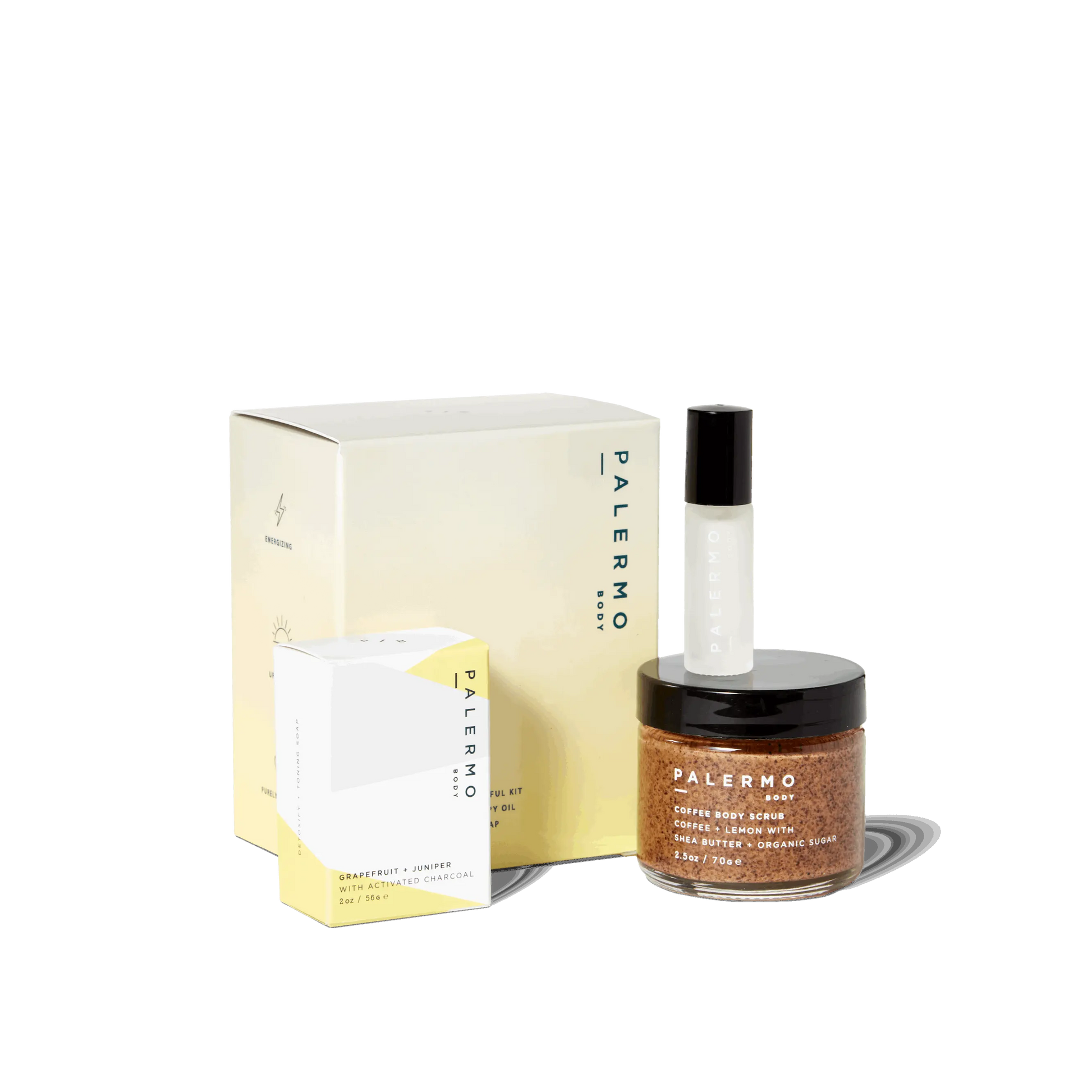 A $45 value, our Energize + Enliven Mindful Kit is an assortment of zippy, uplifting bath and body favorites selected to cleanse, polish, and brighten dull skin and moods. Featuring coffee, sugar, and juicy citrus, this perky set is an excellent remedy for shorter days and winter sluggishness.