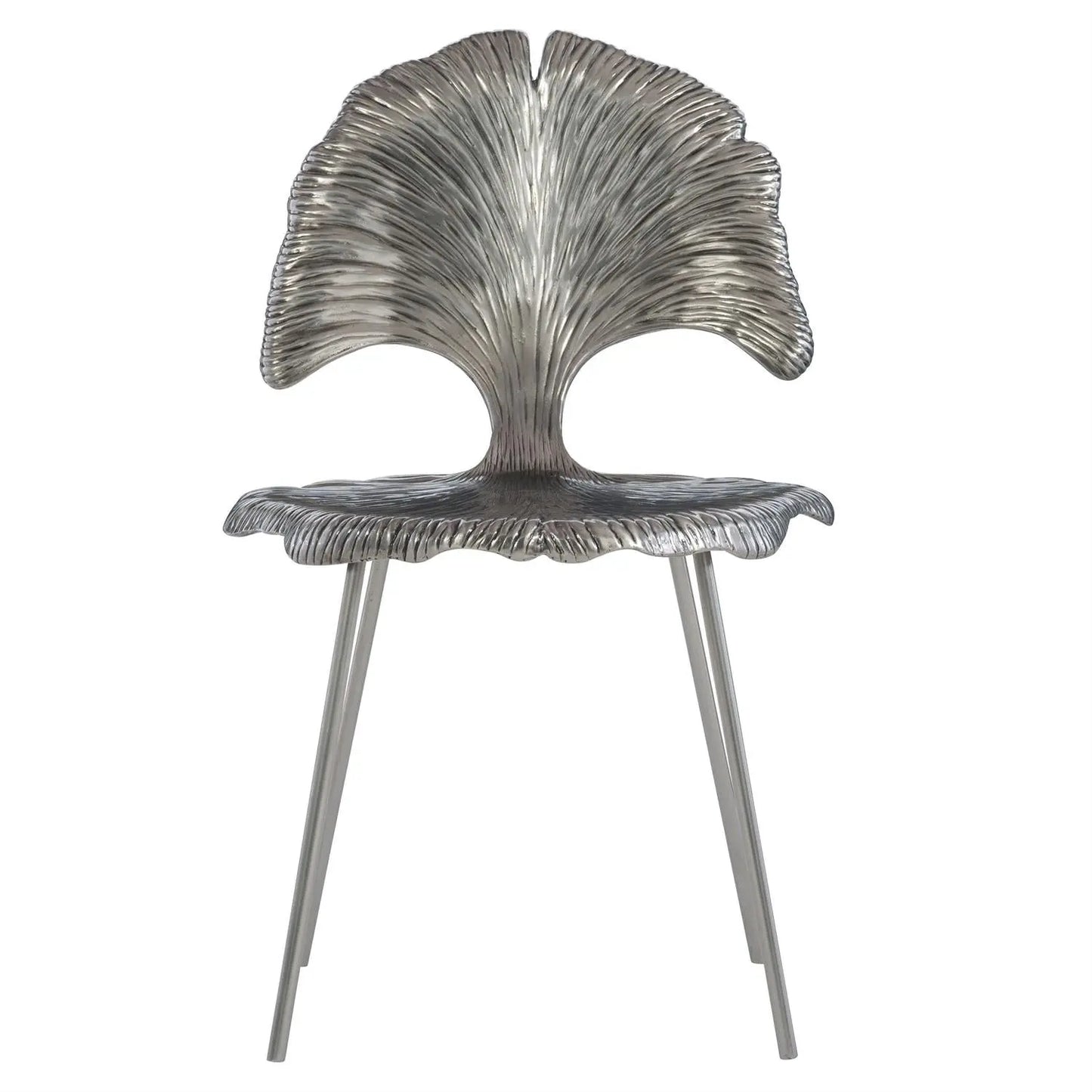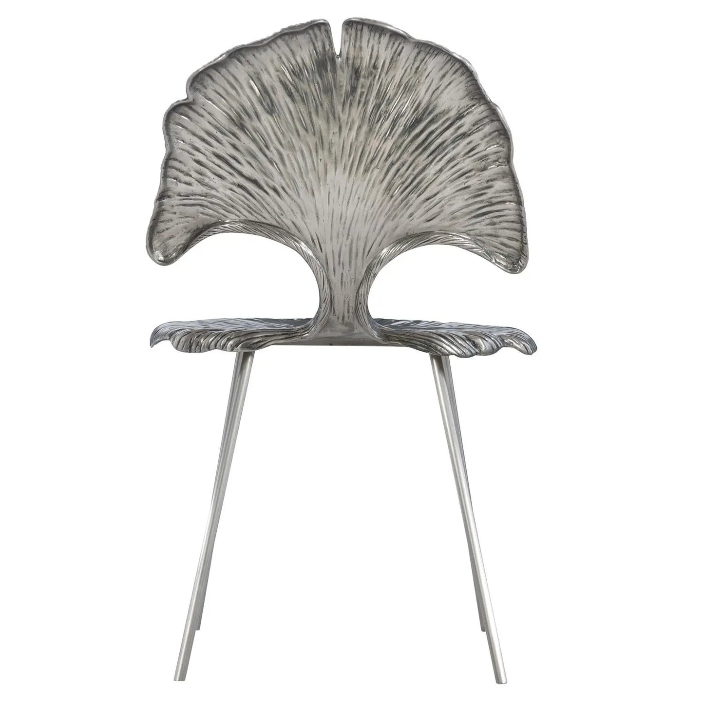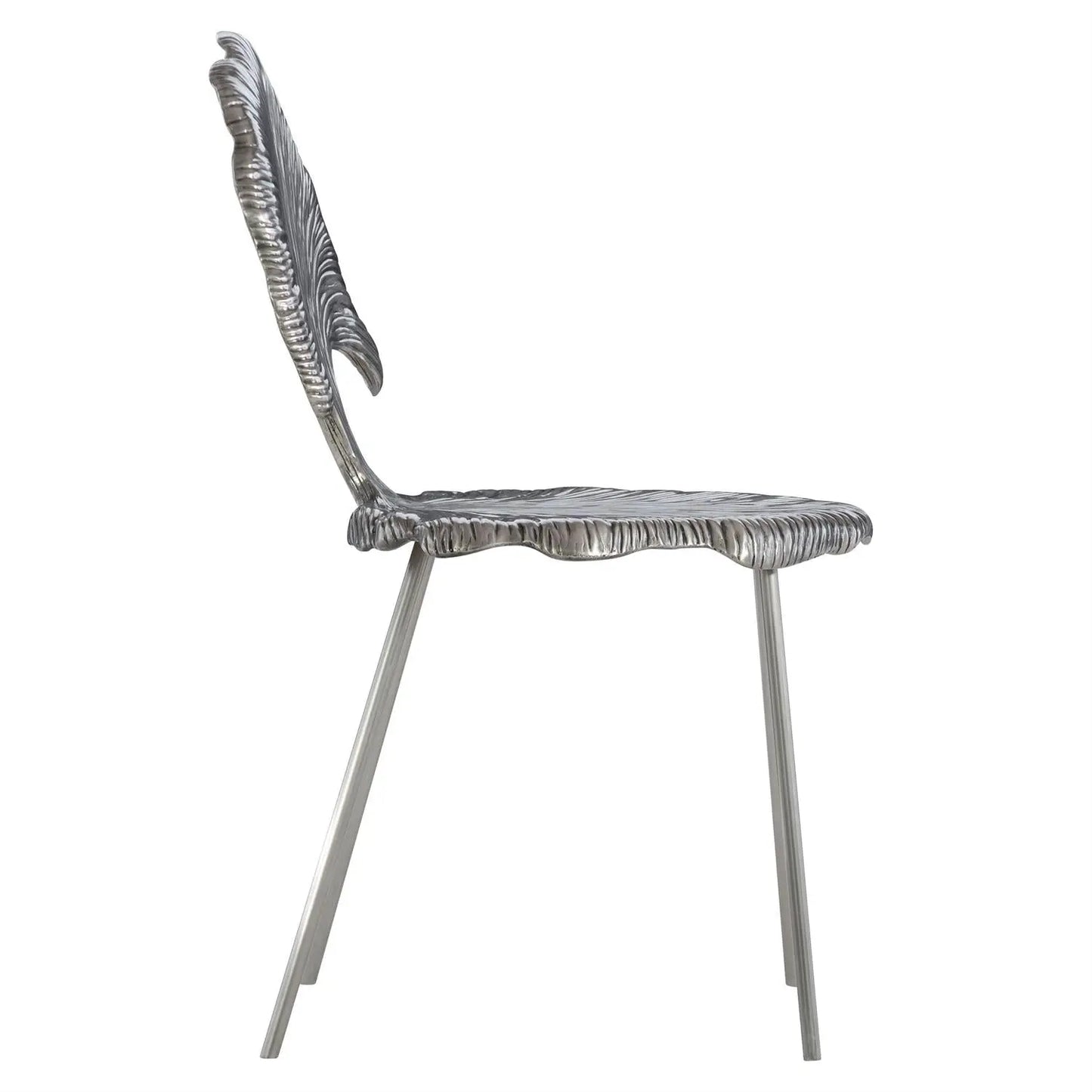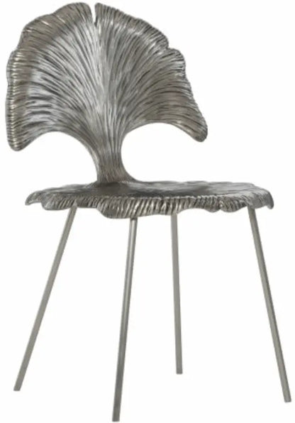 Constructed from durable cast aluminum in a sleek nickel finish, this elegant chair adds a touch of natural texture with its shiny metal design. Measuring at 20.88 inches wide, 23.81 inches deep, and 34.25 inches tall, this piece is perfect for any space. Please note that shipping may take up to 4 weeks due to possible changes in lead times. Unfortunately, refunds and returns are not currently offered for this product.