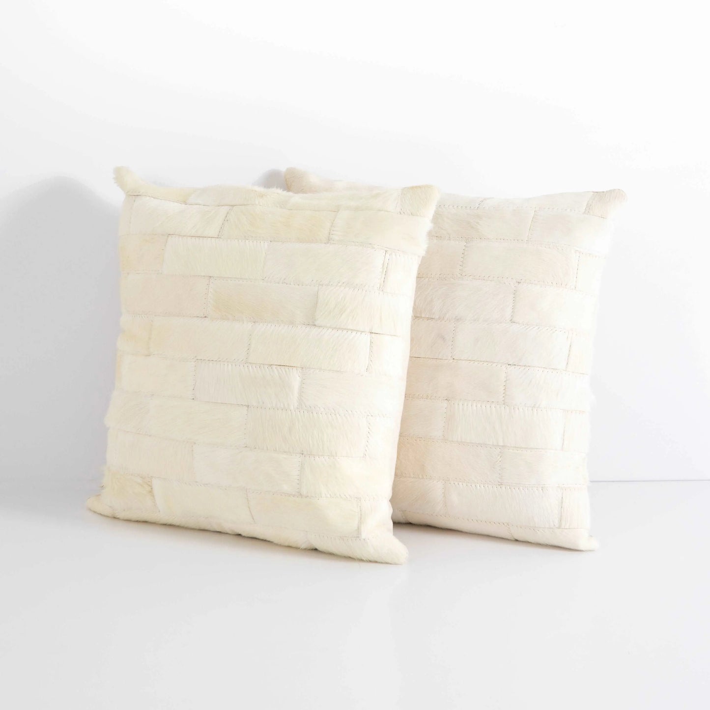 Toss in some texture with authentic cowhide throw pillows. A variance in coloring and pattern is to be expected, and speaks to the one-of-a-kind nature of this exotic two-piece set. Chromium-free processing ensures eco-friendly tanning without the use of dyes. Inserts included.