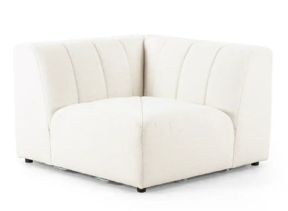 The sensible sectional meets modern Italian styling. Wide vertical channeling offers a luxurious take on modular seating. Bright Fayette Cloud covering awes in any space. Corner chair to sectional. Performance fabrics are specially created to withstand spills, stains, high traffic and wear, ensuring long-term comfort and unmatched durability.