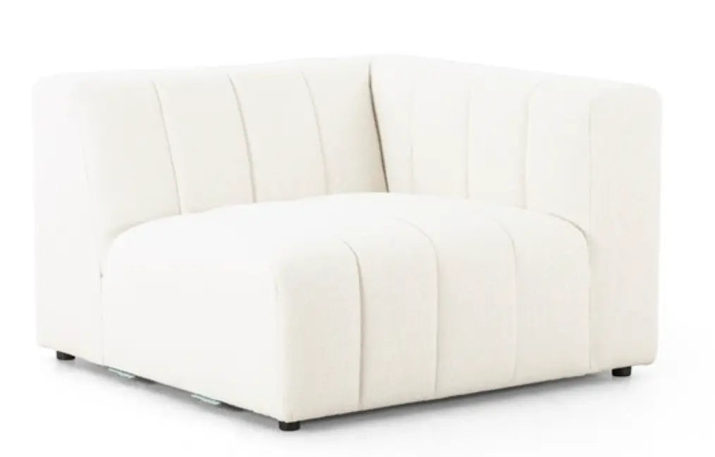 The sensible sectional meets modern Italian styling. Wide vertical channeling offers a luxurious take on modular seating. Bright Fayette Cloud covering awes in any space. Right arm facing piece to sectional. Performance fabrics are specially created to withstand spills, stains, high traffic and wear, ensuring long-term comfort and unmatched durability.
