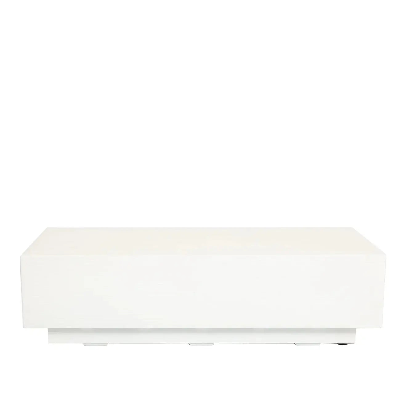 The Bazaar is made up of carefully curated pieces designed to elevate any setting. Created to complement existing collections, the Bazaar provides globally inspired elements to break up the traditional "set," and create a thoughtfully designed indoor or outdoor living space. Featuring a natural wood grain texture, This end table mimics natural materials with a reinforced fiber concrete that will withstand the elements. Finished in bone white. This piece is stunning indoors or out. Dimensions: 60" width x 30" depth x 17.5" height Weight: 77 lbs. Please allow up to 4 weeks for shipping and note that refunds/returns are not available. Expertly designed for both indoor and outdoor use, the Faux Bois Outdoor Coffee Table boasts a natural wood grain texture and reinforced fiber concrete construction to withstand all weather conditions. With its stunning bone white finish, this end table adds a touch of sophistication to any space. Measuring 60" in width, 30" in depth, and 17.5" in height, and weighing 77 lbs, it is the perfect addition to elevate your living space. Please note that due to high demand, shipping may take up to 4 weeks. Refunds and returns are not available for this product, ensuring your satisfaction with its high-quality materials and lasting durability.