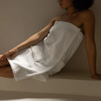 Say hello to the ultimate hands-free solution for your post-shower rituals. Designed with the same blend of cotton and bamboo viscose and Zero Twist technology as our renowned Luxe Bath Collection, this wrap offers a luxurious alternative for those seeking convenience without compromising comfort. Featuring flexible elastic around the back, it ensures a customizable fit for all body types. Complete with large front pockets, our bath wrap keeps your essentials close and at hand.