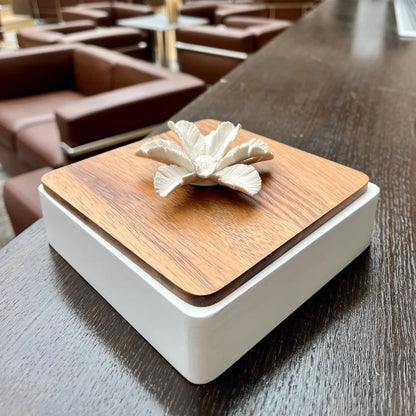 LUXOR 15 cm Wooden Box with Lid and Porcelain Flower