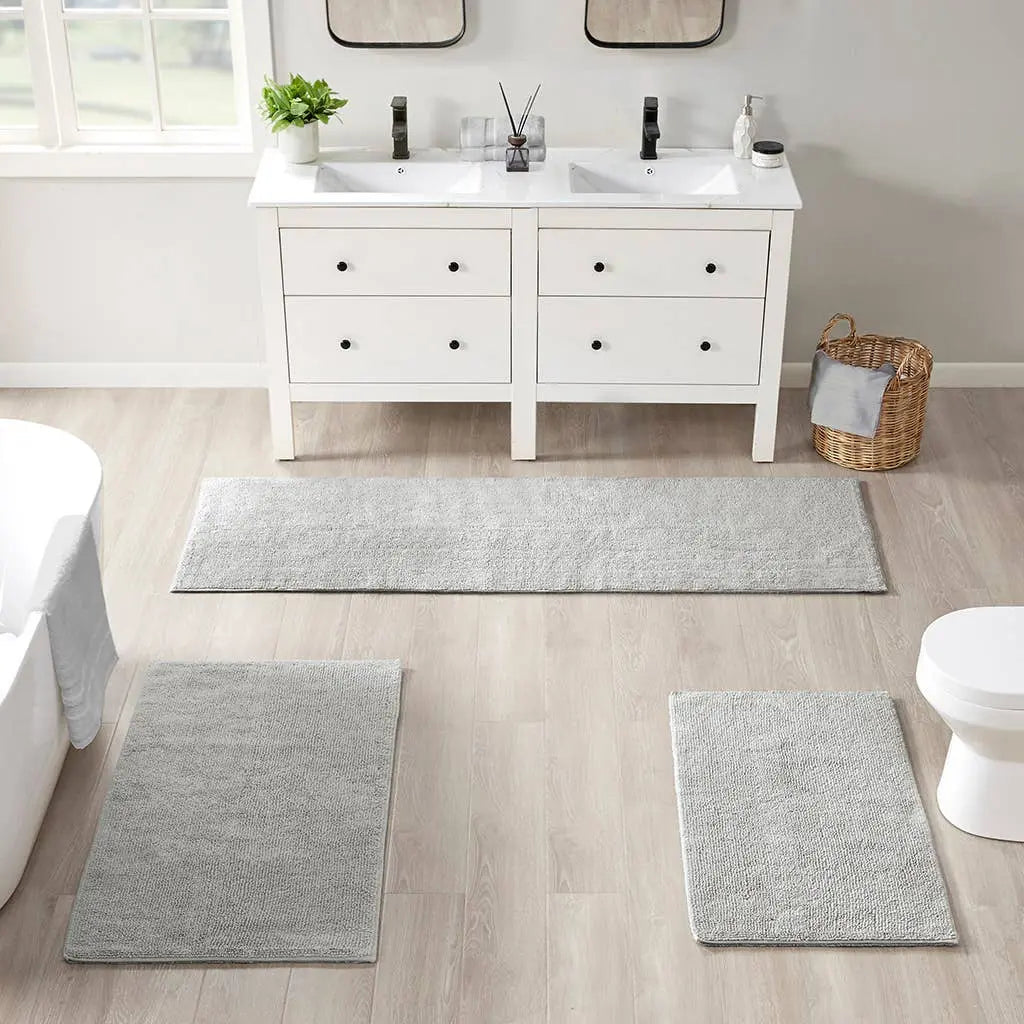 Bring hotel-level comfort into your bathroom with the Luxury Feather Touch Reversible Bath Rug. Designed with a soft, velvety texture and a versatile reversible design, this rug combines everyday practicality with a touch of indulgence. The elegant grey tone makes it a seamless fit for any modern or classic décor.