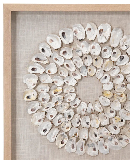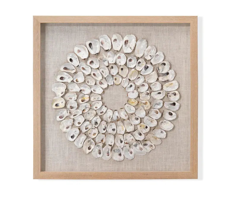 A revolving pattern of unique shell shapes create a circular pattern of organic beauty. Natural colors and textures of radiate outward while drawing you into this stunner from the sea. As if this wall art piece washed ashore, specifically for your wall.