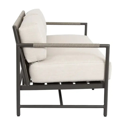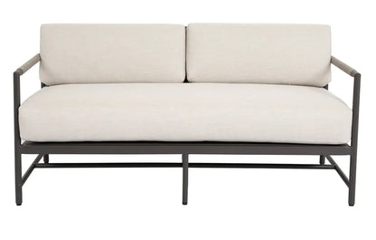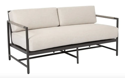 Expertly crafted with a Graphite finish, the Pietra Loveseat features a fully welded, scratch-resistant powder-coated aluminum frame and weather-resistant colorfast rope in Stone grey. For added durability and comfort, the loveseat also includes high-resiliency foam cushions and non-marking plastic glides. Its commercial quality construction and option for custom cushions make it a top choice for outdoor seating. Please note, this product is final sale and is not eligible for refunds or returns. Allow up to 4 weeks for shipping, as lead times may vary. W62" x D31" x H30" / 45 lbs Arm Height 25", Seat Height 18" Constructed with both durability and comfort in mind, the Pietra Loveseat boasts a fully welded, scratch-resistant frame and weather-resistant rope. The option for custom cushions and commercial quality construction make it a top choice for outdoor seating. Please note, this product is final sale and is not eligible for refunds or returns. Add it to your outdoor space and enjoy for years to come.