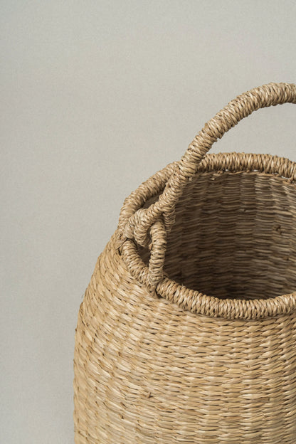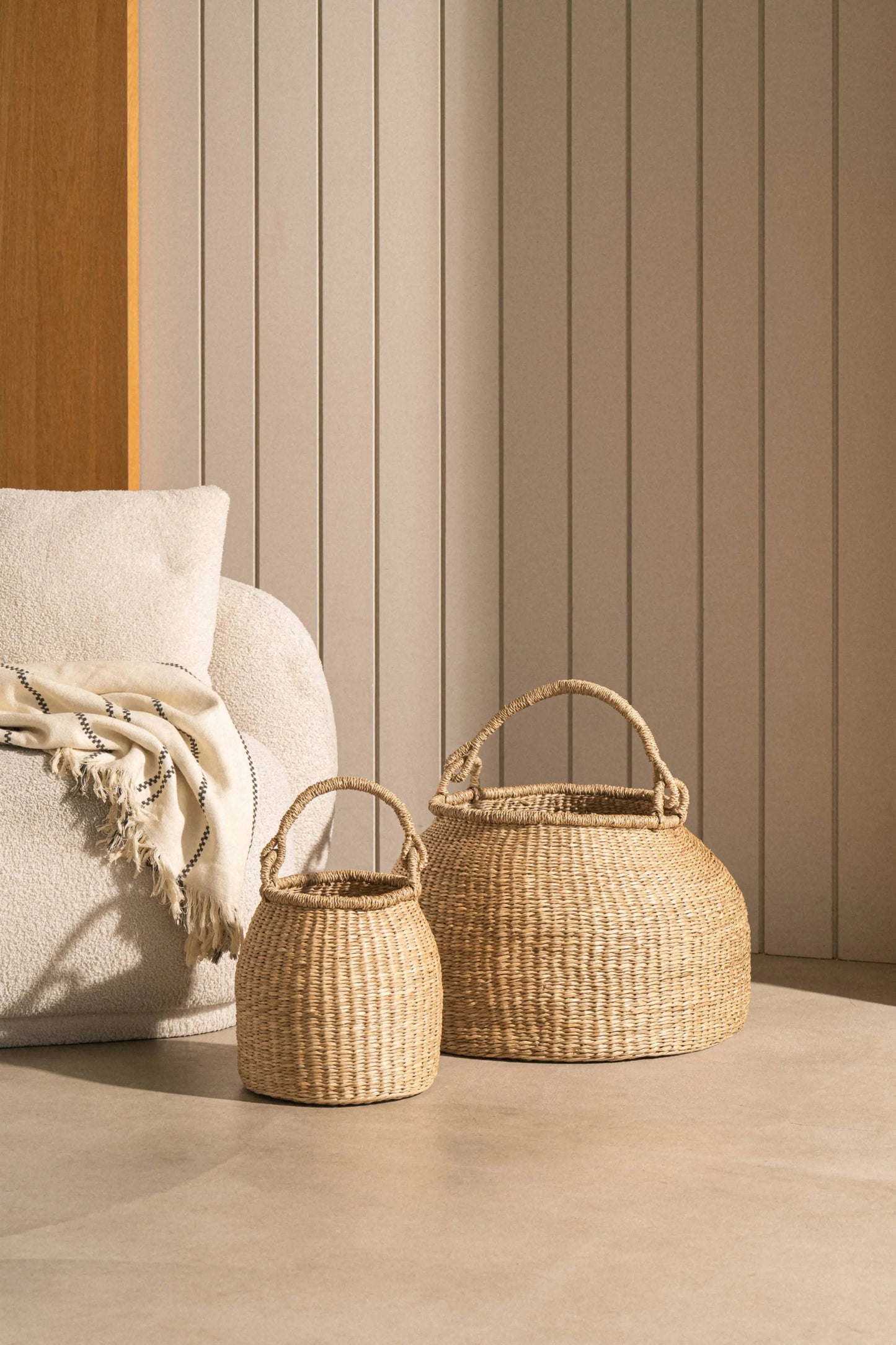 Add a natural element to your home with the Satna Bucket Basket. Handwoven from durable seagrass in a closed weave design, this basket features an organic silhouette and top handle. Small size ideal storage for small items, sundries or botanicals. Large size ideal storage for throws, magazines or even soft toys.