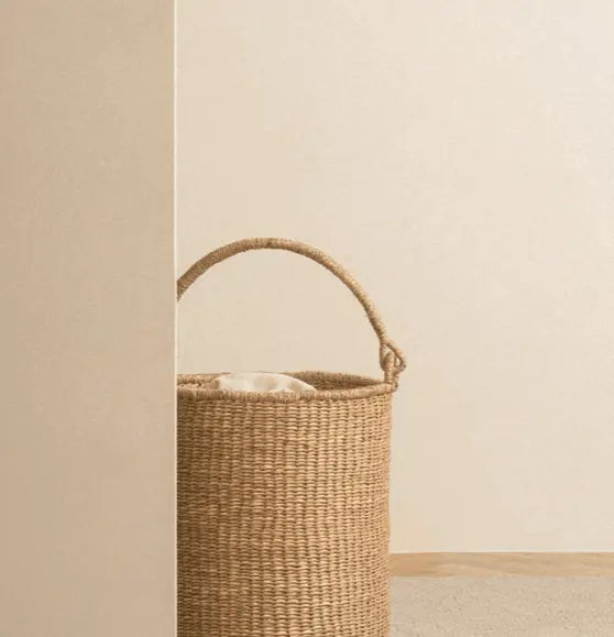 Add a natural element to your home with the Satna Tall Bucket Basket. Handwoven from durable seagrass in a closed weave design, this basket features an organic silhouette and top handle. Ideal storage for pillows, blankets, laundry or linens.