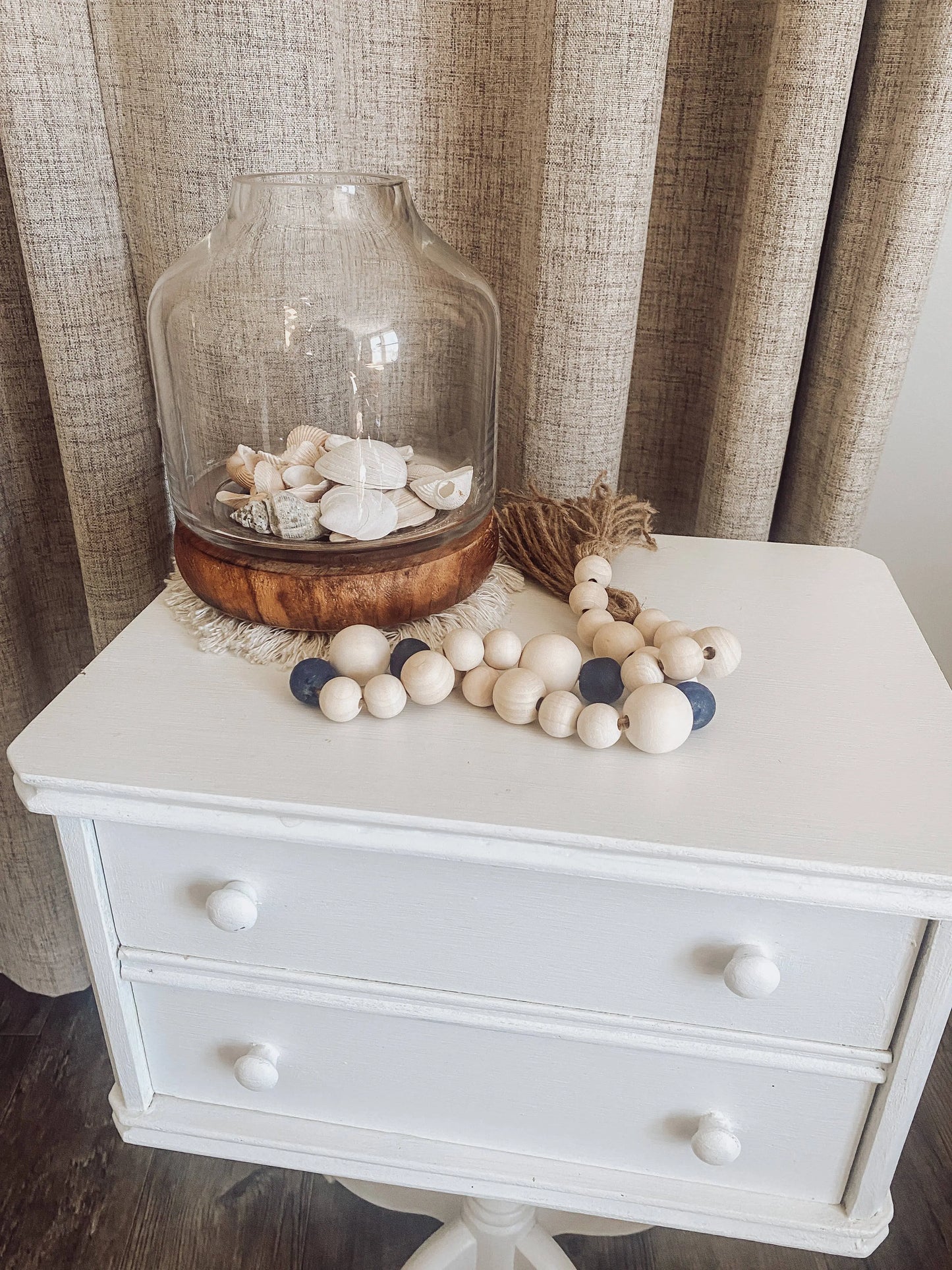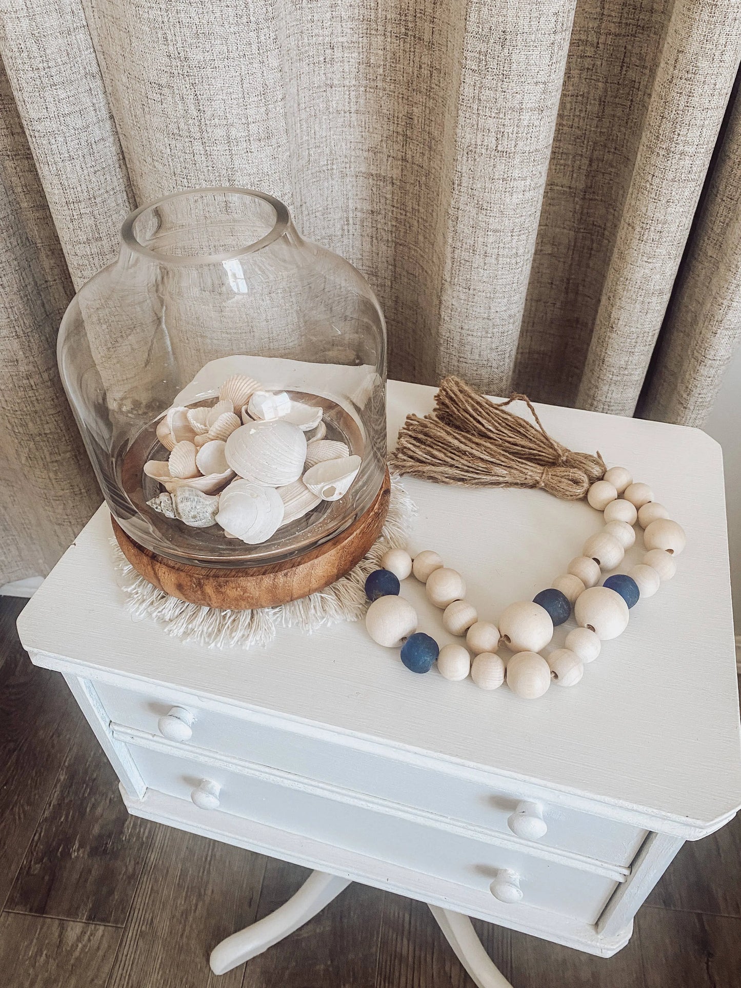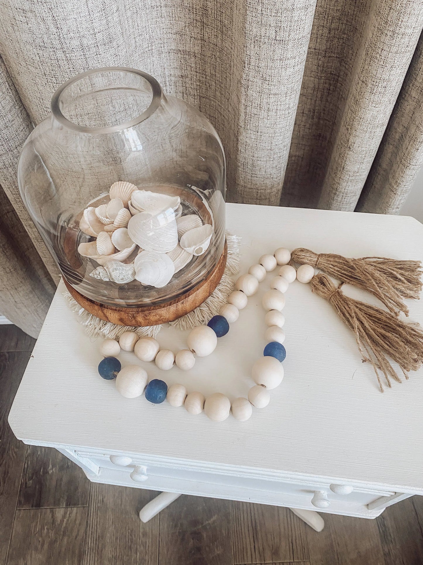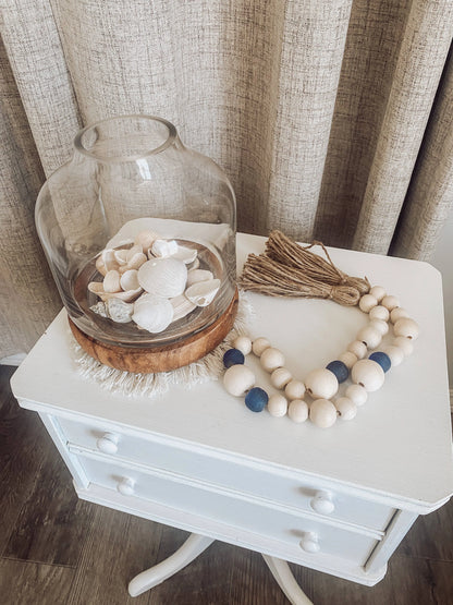 This Sea Glass Tassel Garland is perfect for any home decor! Boho Coastal, Farmhouse Coastal, Lake House or even in the No Coast where we dream of the beach!