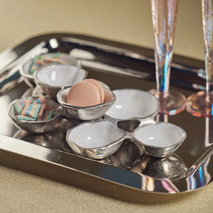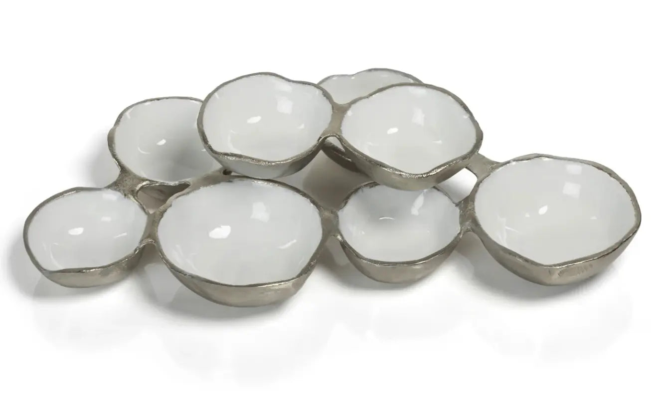 Dimensions: 12.75 in x 7.25 in x 2.25 in Material: Aluminum This set of eight serving bowls is a perfect addition for any gathering. Made of durable aluminum, these bowls measure 12.75 inches by 7.25 inches by 2.25 inches, providing ample space for shared dishes.