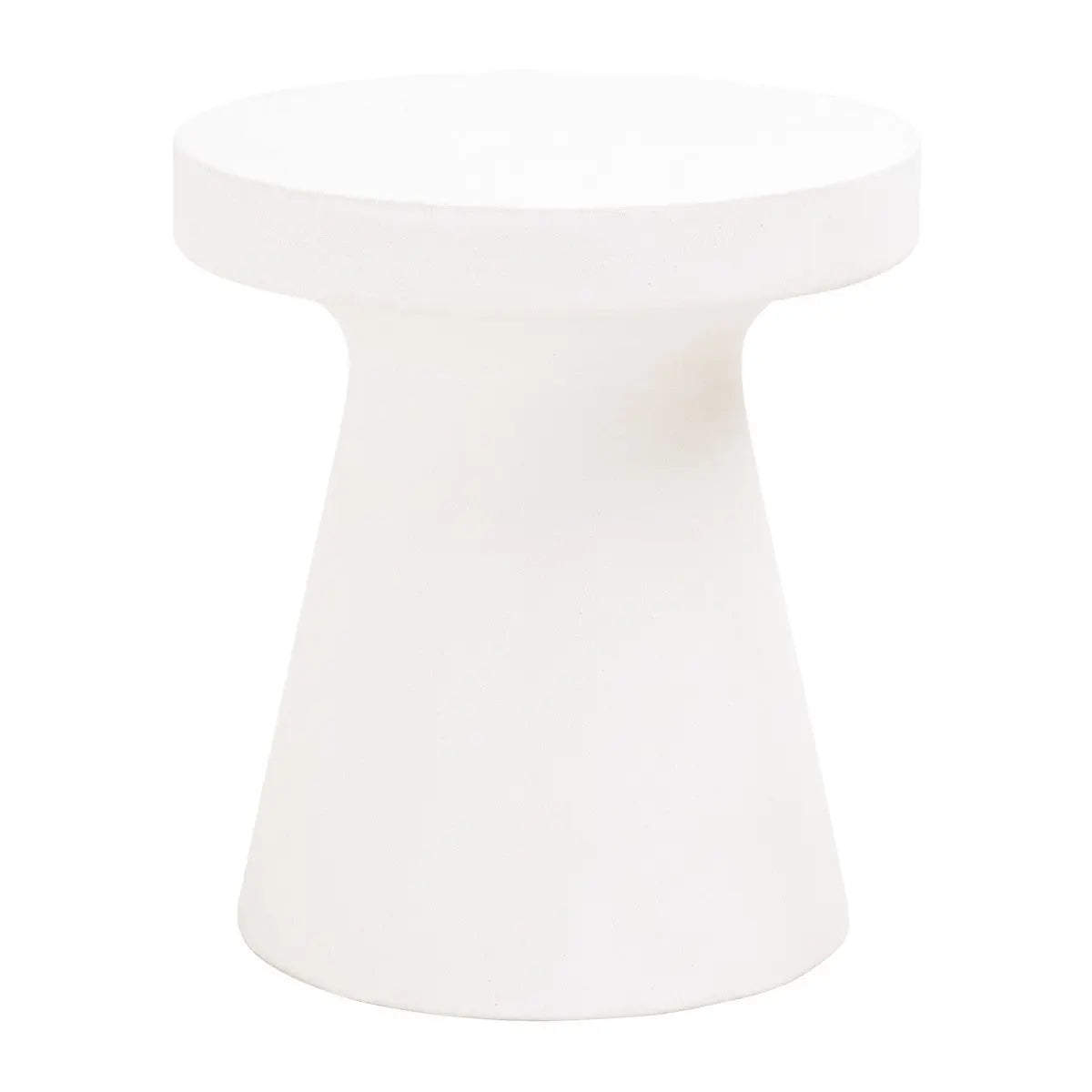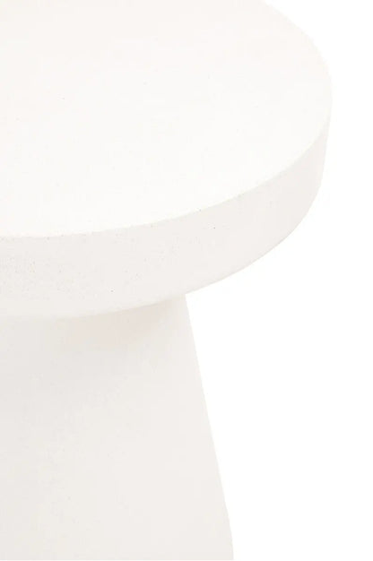 This side table utilizes Nano Sealed Concrete to effectively ward off most surface stains, making it a great option for both indoor and outdoor settings. The round top provides a sturdy surface for all your needs. Finish: Ivory. Additional details include a top thickness of 2.5", with dimensions of 17.75"W x 17.75"D x 19.75"H, and a weight of 42 lbs. Please allow up to 4 weeks for shipping. Please note that refunds and returns are not available for this product.