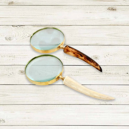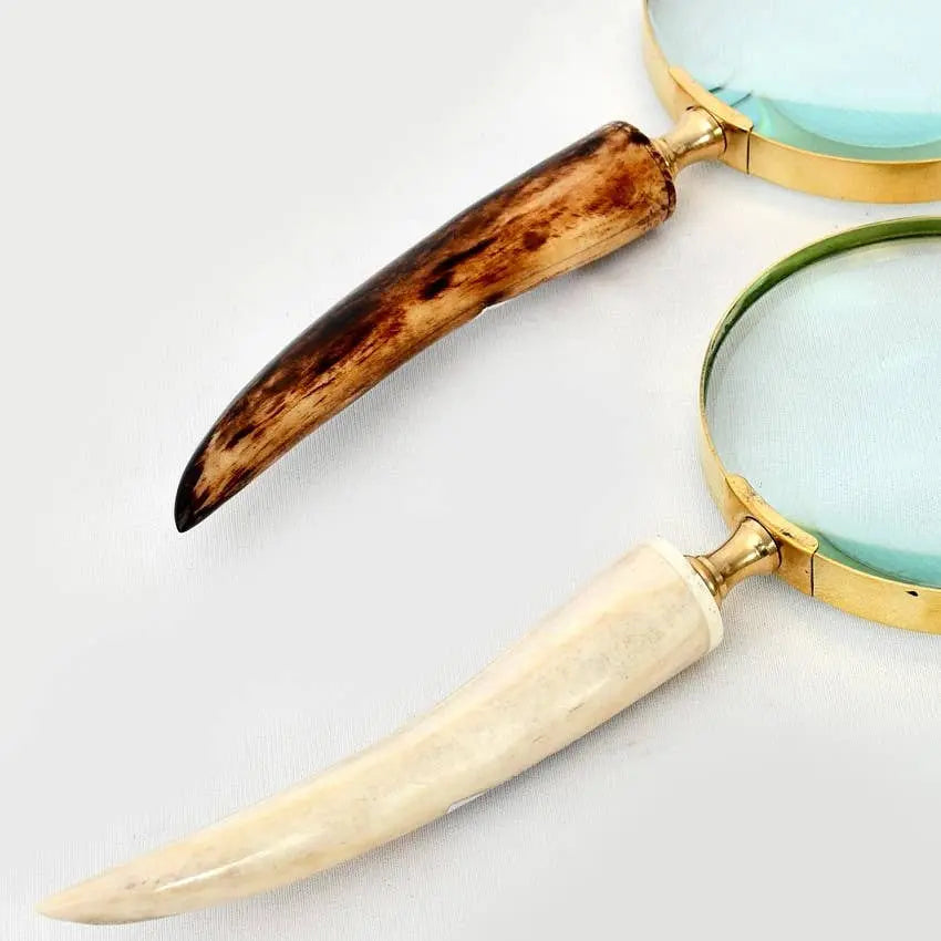 Introducing our White & Brown Horn Magnifying Glasses, the perfect addition to your home decor and a must-have for any avid reader or collector. Crafted with precision and style, these magnifying glasses feature a unique combination of white and brown horn, adding a touch of elegance to your space. Whether you're exploring the intricate details of a vintage map or delving into the pages of your favorite book, these glasses provide exceptional clarity and magnification. They are not only functional but also make a great gift for him, suitable for any occasion. Enhance your home accents with these exquisite magnifying glasses and elevate your reading experience to a whole new level.